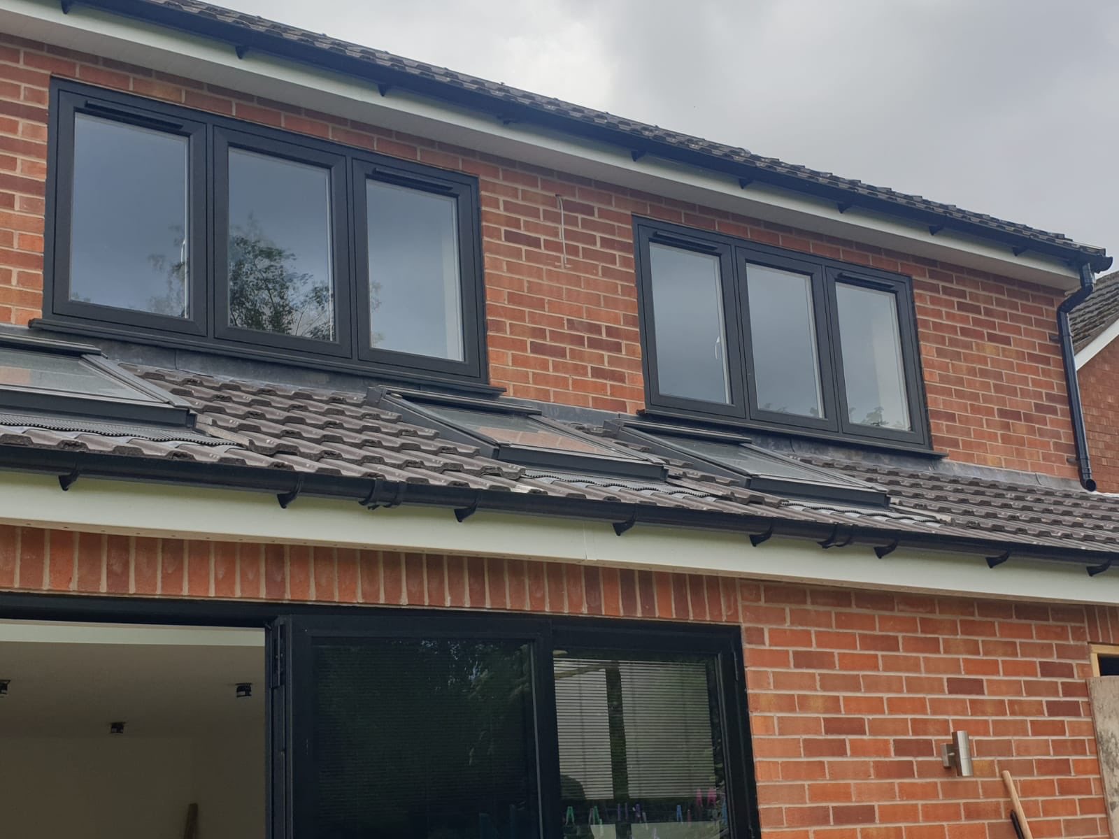 red brick house with black windows